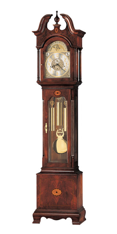 Cable-driven, triple-chime Kieninger movement plays choice of Westminster, St. Michael, or Whittington 1/4, 1/2, and 3/4 chimes accordingly with full chime and strike on the hour.