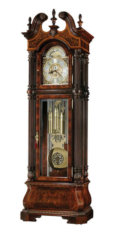 Model 611-031 pictured here features a Kieninger cable-driven, triple-melody, nine-tubular chime movement features 36 bushings (24 bronze and 12 jeweled) and plays choice of Westminster, St. Michael, or Whittington 1/4, 1/2, and 3/4 chimes accordingly, with full chime and strike on the hour.