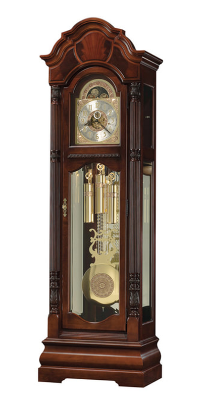 Cable-driven, triple-chime Kieninger movement plays choice of Westminster, St. Michael, or Whittington 1/4, 1/2, and 3/4 chimes accordingly with full chime and strike on the hour.