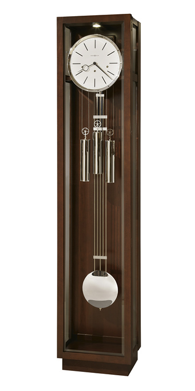 Cable-driven, Westminster chime Kieninger movement plays 1/4, 1/2, and 3/4 chimes accordingly with full chime and strike on the hour.Automatic nighttime shut-off.